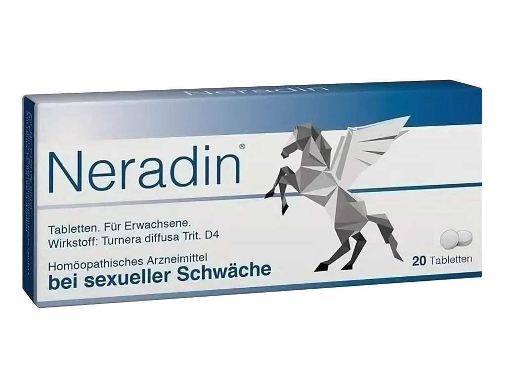 Neradin est un remède homéopathique contre la dysfonction érectile. Le producteur Pharma SGP recommande son utilisation pendant 4 semaines au minimum pour ce complément alimentaire, Neradin, fonctionne. La posologie est 3 pilules par jour pour que la substance active Turnera Diffusa puisse commencer à bien manifester ses effets. Ces pilules sont disponibles dans des paquets de 20 ou 40 comprimés. L’avantage de Neradin est efficace surtout lorsque vous n’êtes pas pressé par le temps. Il suffit d’administrer les pilules pendant la journée avec des verres d’eau.